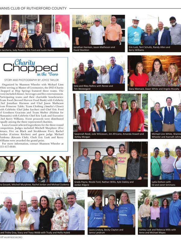 Organized by Shannon Wheeler with Michael Linn White serving as Master of Ceremonies, the 2025 Charity Chopped at Hop Springs featured three teams. The event included dinner, beverages and live entertainment. The teams cooked their three course meals in local food trucks provided by TN Craft Butcher, Slick Pig BBQ, and Spaghetti Monster.