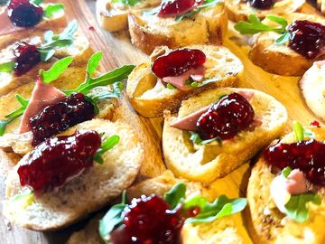 Toasted garlic french bread, french onion aioli, arugula, sliced roast beef, raspberry preserves